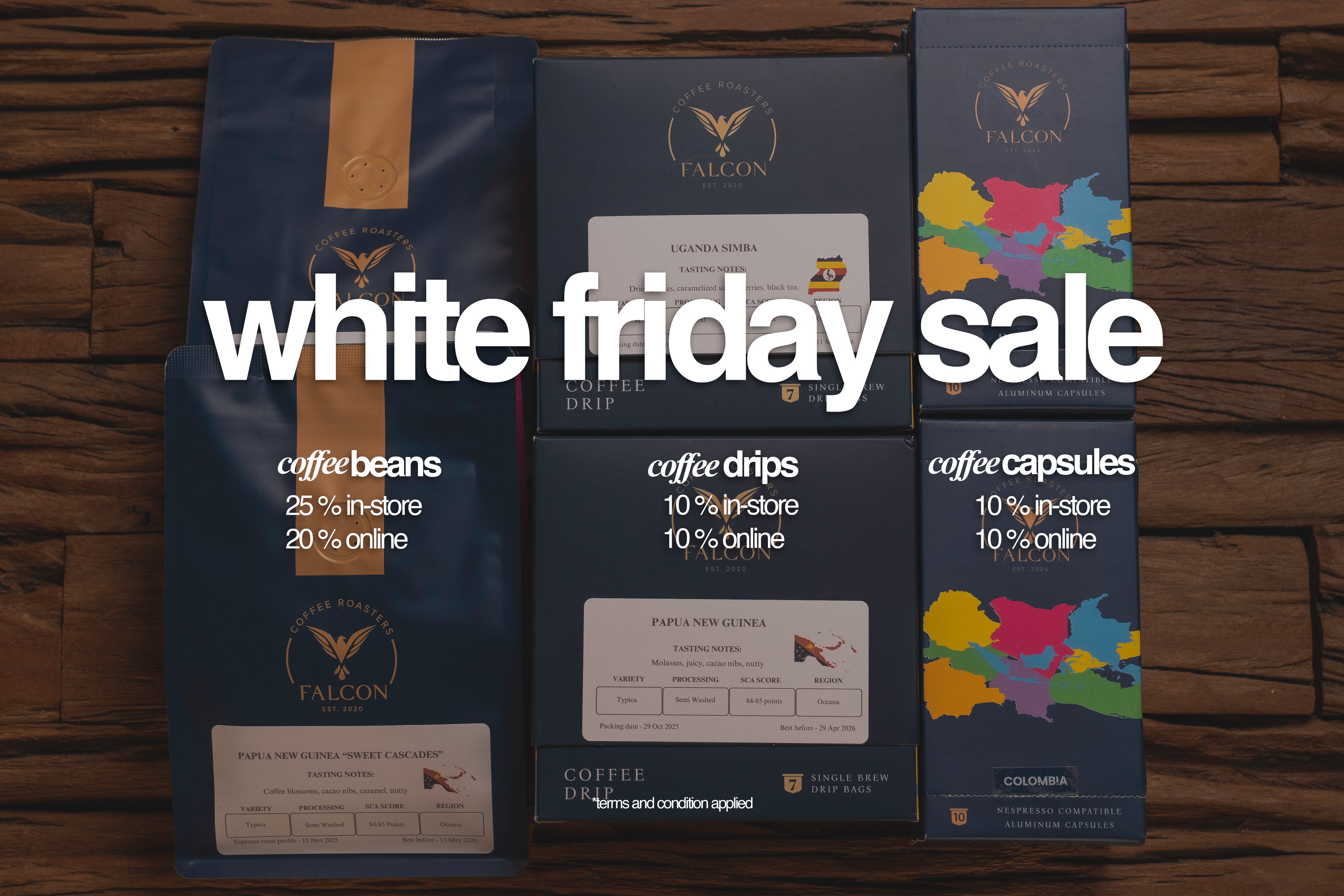 At Falcon Coffee Roasters, we turn green coffee beans into the delicious coffee you enjoy every day. We roast our beans when they are fresh to bring out their unique flavors and aromas. We are more than just a coffee supplier in the UAE. Our specialty coffee can transport you to different parts of the world with every sip. Come follow the aftertaste with Falcon Coffee Roasters!